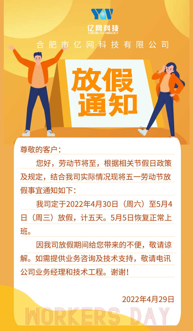 合肥市億網(wǎng)科技有限公司五一節(jié)放假通知